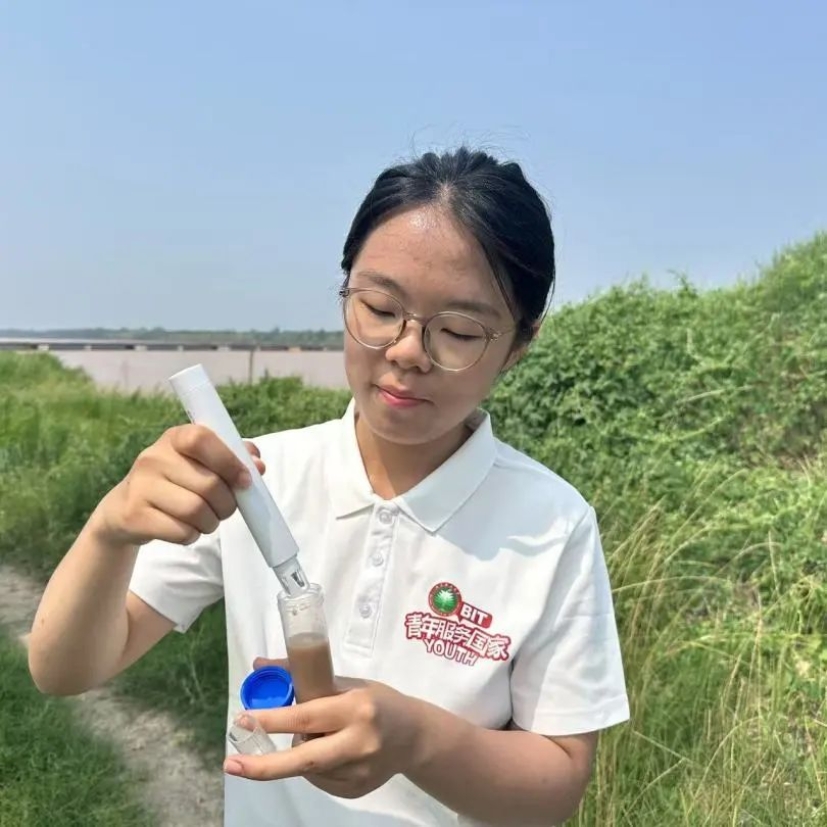 团队成员在进行水样和土壤的采样和实时检测