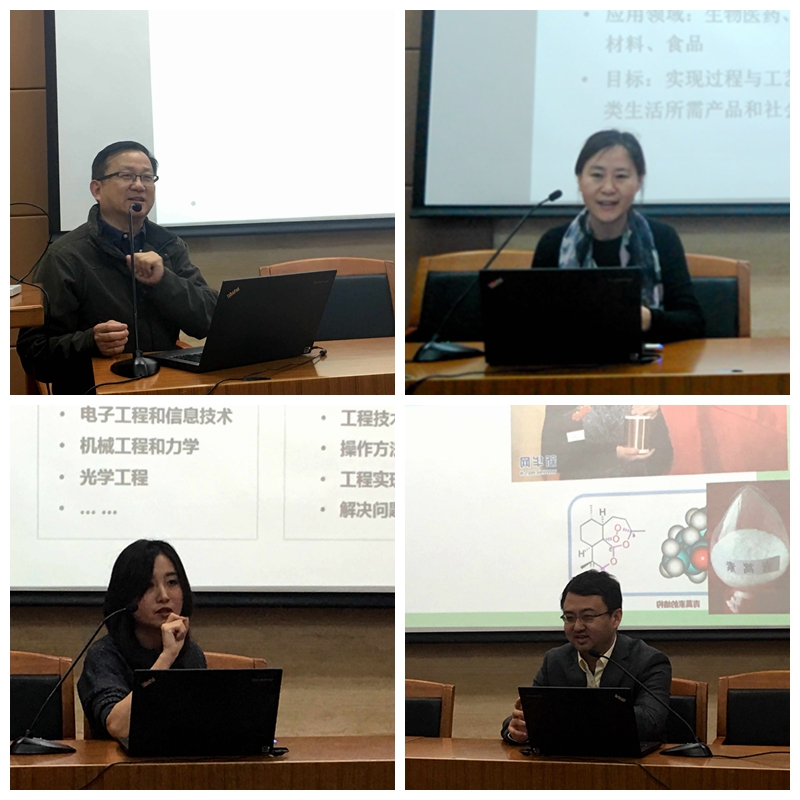 首先为同学们进行介绍的是生物技术专业的庆宏老师。他从生物技术的定义开始,对生物技术展开介绍。进一步讲解了生物技术的发展、分类、应用(生物芯片、生物传感器、生物医药、超级细菌等)、就业前景以及发展趋势,并对本专业的师资队伍为大家进行了介绍。接下来,生物医学工程的郭淑元老师和霍毅欣老师就生物工程的生产应用、就业方向,师资力量进行了详细的介绍。同时,霍毅欣老师还结合自己的求学经历,生动地介绍了生物技术和生物工程专业的在国内院校的起源和发展以及生物产业和医疗产业的前景,并且鼓励在座的同学们在未来的学习工作中脚踏实地做学问,争取成为专业的领军者。最后,生物医学工程的陈端端老师就生物医学工程的发展目标(将医疗从经验化向数字化转变),学科应用(医疗器械开发),专业定位(医疗健康、军用国防),未来课程安排以及专业的师资和就业前景进行了讲解,同时陈老师还强调生物医学工程不是一个独立的学科,与光机电等多学科相互配合,并且鼓励同学们将学科知识组织成网络贯通起来,应用到实际中。