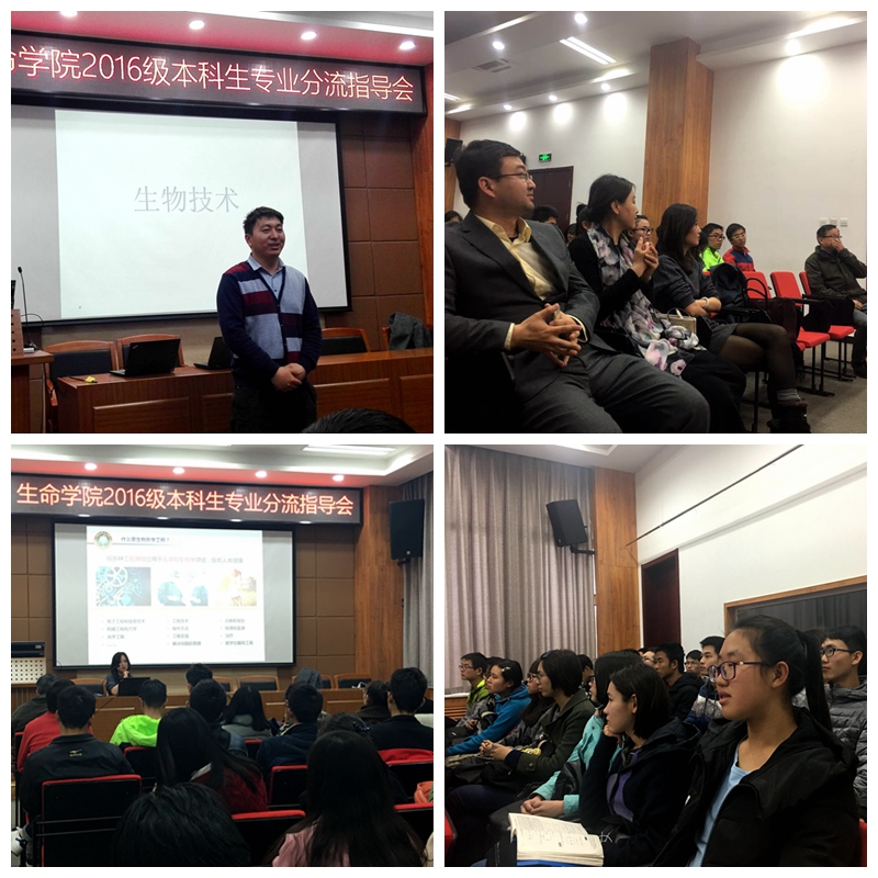 为了让大一新生深入了解各专业的具体情况,引导同学们更好的完成专业分流工作,生命学院于2016年3月8日在生态楼118举办了2016级本科生专业分流指导会。参加此次指导会的有各系所责任教授、2016级本科生辅导员及全体2016级本科生。会议由秦奎伟导员主持。