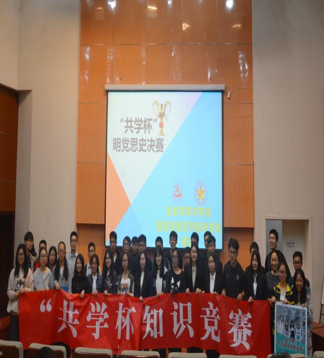 2017年4月16日晚6:30,管理与经济学院和生命学院共产主义学习实践会共同举办的“共学杯”知识竞赛决赛在良乡校区综合教学楼演艺厅举行。莅临本次活动的嘉宾有:管理与经济学院2016级辅导员庄杰老师、管理与经济学院共产主义学习实践会会长龚祺寻;参与颁奖的嘉宾有:生命学院学生会主席米凯旋、管理与经济学院2015级党支部书记王金柱。本次活动参与人员为15级和16级所有入党积极分子。本次活动旨在促进同学们积极了解党章校史,增强自身历史文化底蕴。
