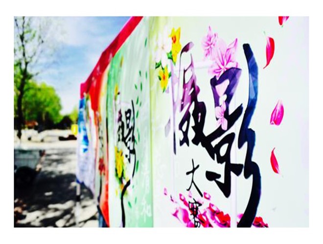 上午9:30,志愿者已经集合完毕,志愿者就开始了我们外场活动的布置。漂亮的海报将场地打扮得花枝招展,更有了春天的气息。